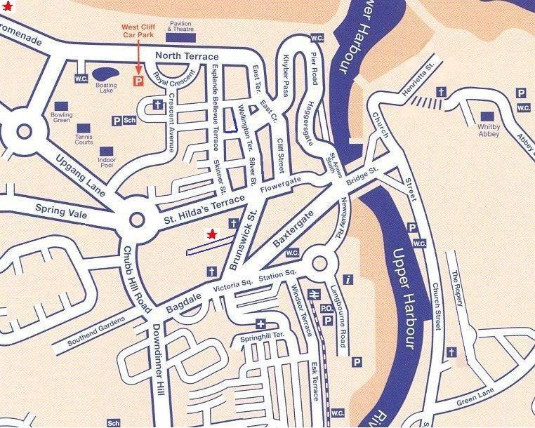 From Scarborough: enter Whitby from A171, cross New Bridge (high level). At first set of traffic lights carry straight on down Prospect Hill to roundabout. Take 2nd exit up Chubb Hill. Continue to next roundabout, and turn right (4th exit) onto St Hildas Terrace. Continue down into town down Flowergate following the bend to the right down Brunswick Street. Take the first right turn onto Newton Street and park up on the right in front of the red brick Church Hall building YO21 1QX.